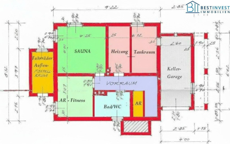 Wohnkeller (2m Raumhöhe, Fenster) mit Netto-Fläche von 77m2- über Innen und Außenstiege erreichbar