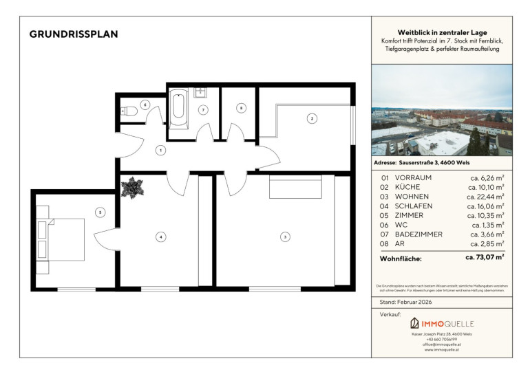 Willkommen in Ihrem neuen Zuhause ! Diese gepflegte Eigentumswohnung im 7. Stock in Wels vereint lichtdurchfluteten Wohnkomfort mit Fernblick und einem klar strukturierten Grundriss - perfekt für Paare, urbane Singles oder Investoren mit Weitsicht.