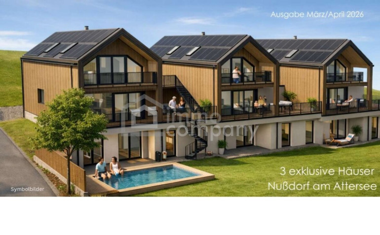 In einer der begehrtesten Lagen des Salzkammerguts entsteht dieses außergewöhnliche Wohnprojekt: drei exklusive Wohnhäuser in traumhafter Hanglage am nördlichen Ortsrand von Nußdorf am Attersee. Hier vereinen sich moderne Architektur, nachhaltige Haustechnik und ein unvergleichlicher Blick auf den Attersee und das imposante Höllengebirge, das an warmen Sommerabenden in eindrucksvollem Rot erstrahlt.