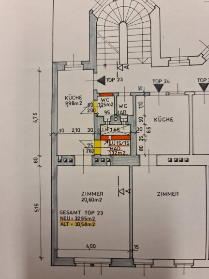 Vorzimmer mit Essplatz, Einbauküche, 1 Zimmer, Bad mit Dusche, extra WC