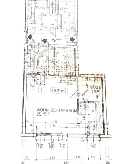 Aus dem Vorraum können Sie den ca. 25 m² großen Wohn-Schlafraum mit offener Küche, das Bad und das separate WC betreten.