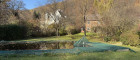 Am Ende des Gartens wartet das Schwimmbiotop – naturbelassen, ruhig und von besonderer Schönheit. Wasserpflanzen, sanfte Uferzonen und das Spiel von Licht und Spiegelungen verleihen ihm etwas Ursprüngliches. An warmen Tagen tanzen Libellen über dem Wasser, und man hat fast das Gefühl, Teil einer kleinen, eigenen Naturwelt zu sein.