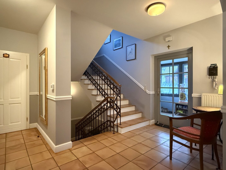 Das Haus wurde 1998 neu errichtet – bewusst im Landhausstil, mit feinem Gespür für das Altbewährte. Ein Stil, der an englische Landhäuser erinnert: leicht, romantisch und zeitlos, fast ein wenig wie aus der Welt von Laura Ashley – nur eben ganz real, geerdet und bewohnbar.