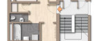 Ein Gang ordnet die Wohnung in zwei klare Bereiche. Rechts vom Eingang liegt der nordöstliche Teil mit Wohnzimmer und dem ruhig gelegenen kleineren Zimmer. Links davon öffnet sich der südwestliche Bereich mit Küche und Schlafzimmer.