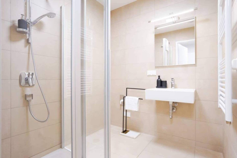 This modern apartment is located on the third floor of the TrIIIple Tower in Vienna’s 3rd district and offers a contemporary living concept in one of the city’s most innovative residential developments. The TrIIIple Towers stand for premium urban living and provide residents with exceptional amenities. A particular highlight is the exclusive rooftop swimming pool with views over Vienna, which is available exclusively to residents. In addition, the complex offers a residents’ library for individual use as well as a separate party kitchen within the building that can be rented for private celebrations or events.