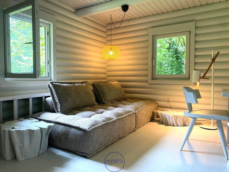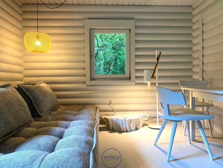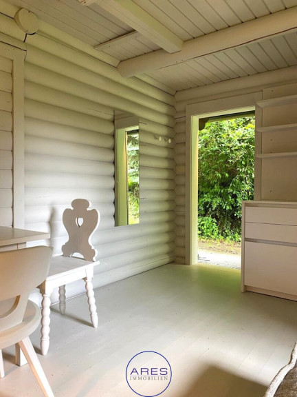 Ein uriges Blockhäuschen - als Gartenhütte genehmigt - mit massiven Sitzgelegenheiten davor, Stromanschluss, Brunnen, kleiner Geräteschuppen, zwei Hochbeete, vor allem aber der herrliche Naturpool (Folienpool), bieten neben ausgleichender Gartenarbeit auch Erholung pur!
