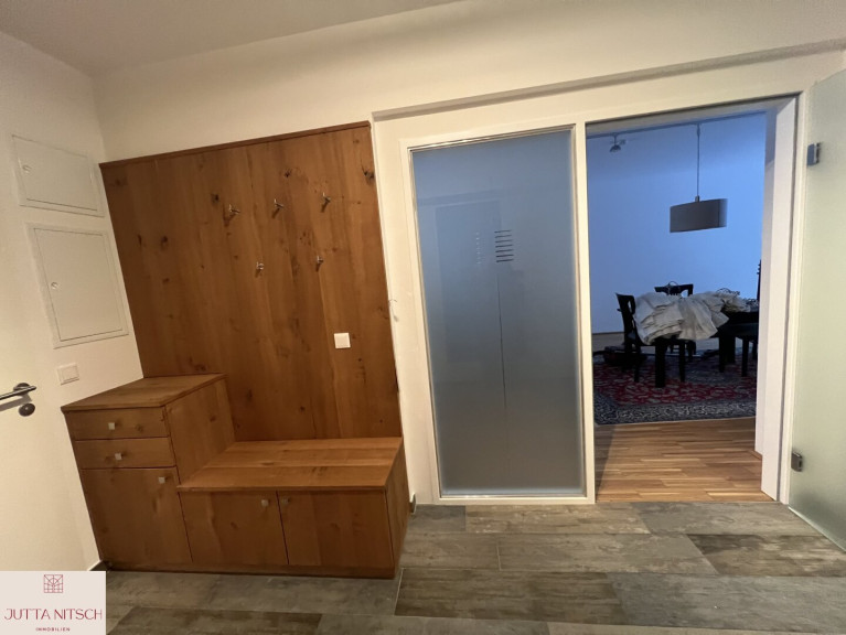 Ein weiteres Highlight dieser Wohnung ist der vom Tischler eingebaute, durchdachte Schrankraum, hier haben Sie Platz für alle Ihre gesamte Bekleidung und müssen sich keine Gedanken über Schränke und Stauraum machen.