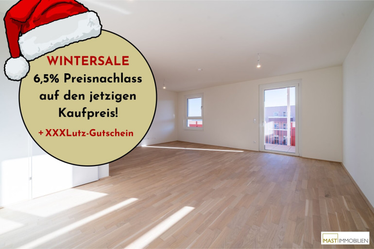 In der kalten Jahreszeit lassen wir die Preise schmelzen: Beim Kauf einer Eigentumswohnung in einem unserer Objekte in der Berresgasse ersparst du dir bis 31.3.2026 die Nebenkosten* und bekommst so jede Wohnung um 6,5% günstiger.