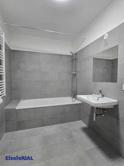 - großzügiges Badezimmer mit Wanne und Waschbecken