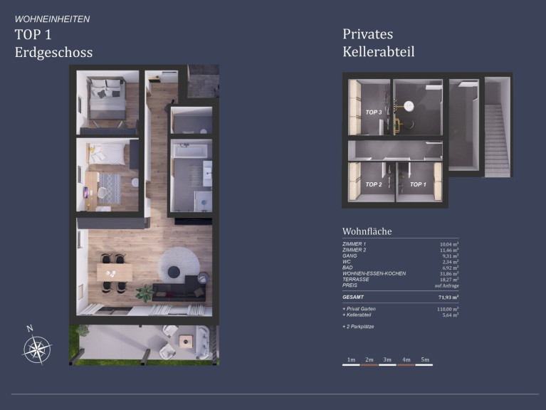 Diese wunderschöne Wohnung liegt im Erdgeschoss im Südwesten des Hauses. Die Wohnung teil sich auf in zwei Schlafzimmer, ein Badezimmer, ein WC und ein großzügiges Wohn-Esszimmer mit Küche. Die nach Süden ausgerichtete Terrasse garantiert traumhafte Sonnenstunden mit einer atemberaubenden Aussicht auf die umliegende Berglandschaft des Jauntals.