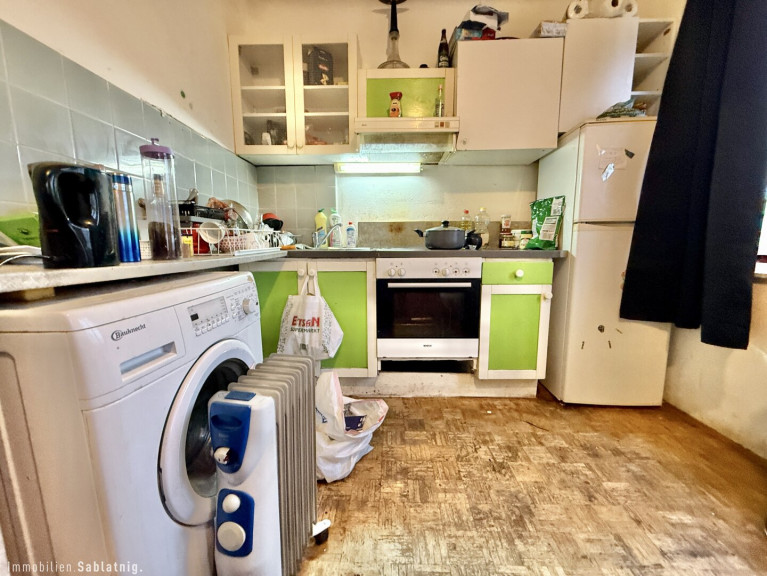 Die vorhandene Einbauküche bietet ausreichend Platz für kulinarische Kreativität – ideal für gemütliche Kochabende oder entspannte Stunden nach einem langen Arbeitstag.