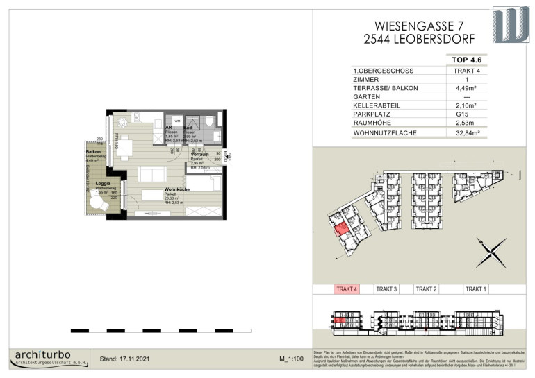ACHTUNG: ein Garagenstellplatz um € 99,32 brutto muss mit gemietet werden - dieser Preis ist in der angegebenen Miete nicht enthalten.