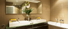 Jedes Schlafzimmer verfügt über ein eigenes, hochwertig ausgestattetes Badezimmer mit Badewanne, Waschbecken und WC. Die Verwendung von Naturstein und edlen Armaturen unterstreicht den luxuriösen Charakter.