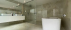 - Badezimmer mit freistehender Badewanne, Dusche und Doppelwaschbecken
