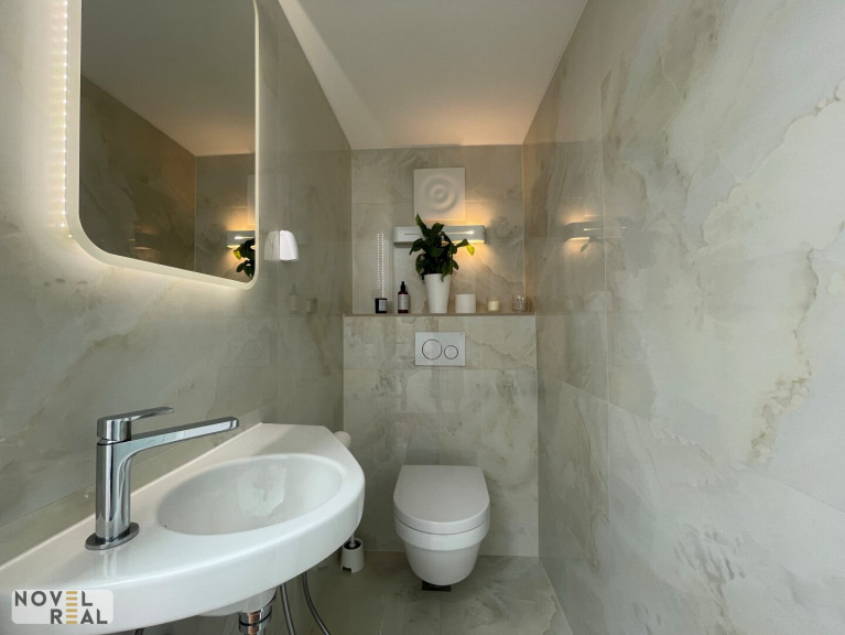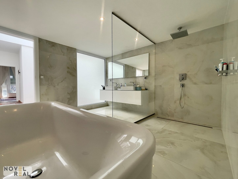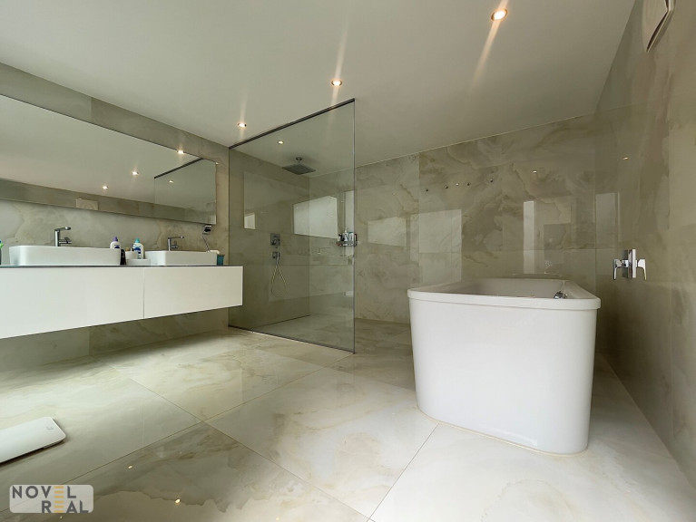 - Parkettboden, Klimaanlage, elektrische Außenjalousien, 3-fach verglaste Kunststofffenster, Edelstahl- und Glasgeländer, Sicherheitseingangstür.