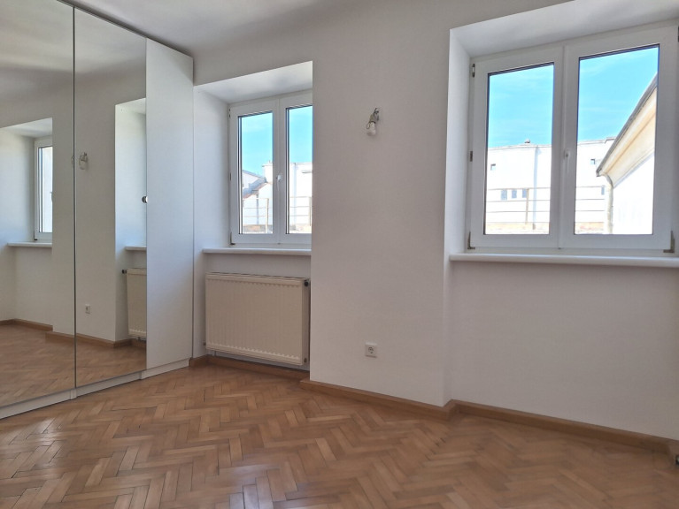 Diese außergewöhnliche Dachgeschoßwohnung wurde Mitte des vorigen Jahrhunderts aus einem ehemaligen Künstleratelier geschaffen, und im Jahr 2014 aufwändig saniert, wobei sowohl die Elektrik als auch die Wasser- und Gasleitungen komplett erneuert, die Decke isoliert, sowie Bad und Küche erneuert wurden. Die originalen Parkettböden wurden ebenso wie die Türen erhalten und restauriert, während die Nassräume neu verfliest wurden. Herzstück der Wohnung ist der über 46m² große Wohnraum mit offener Küche, welcher derzeit von einem nachträglich abgetrennten knapp 12m² großen Schlafzimmer ergänzt wird, wobei auch die Abtrennung eines dritten Zimmers problemlos möglich wäre. Das großzügige Bad mit Fenster verfügt über eine Kingsize-Badewanne und eine Dusche, sowie über ein WC und Platz für eine Waschmaschine. Weiters sind ein Vorraum und 2 Abstellräume vorhanden, von denen einer über eine Anschlussmöglichkeit für ein weiteres WC verfügt. Alle Räume sind aufgrund deren geschickter Ausrichtung uneinsehbar, sodaß Sie in jedem Teil der Wohnung über viel Privatsphäre verfügen.