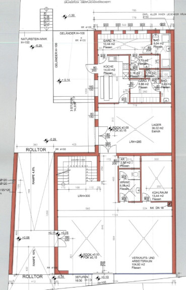 Der Geschäftsbereich im Erdgeschoss mit einer Nutzfläche von rund 208 m² ist sowohl straßenseitig als auch über die Einfahrt separat zugänglich und bietet eine funktionale sowie vielseitige Raumstruktur. Derzeit gliedert sich dieser Bereich in: