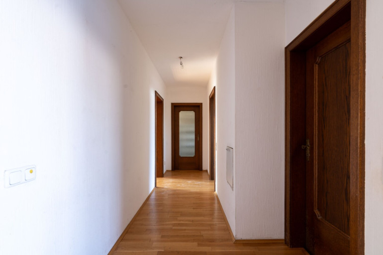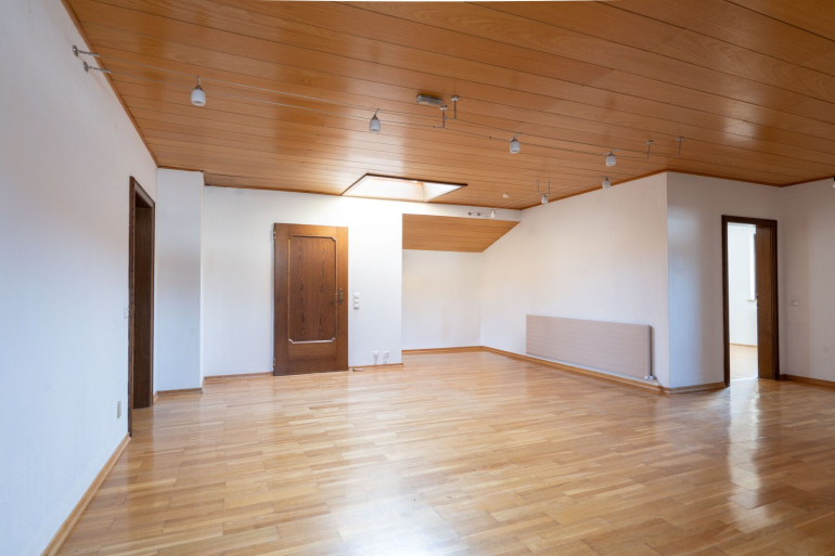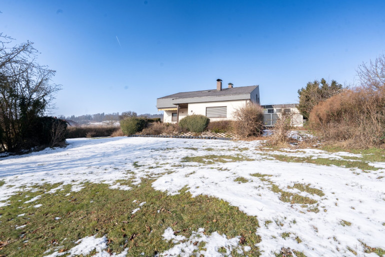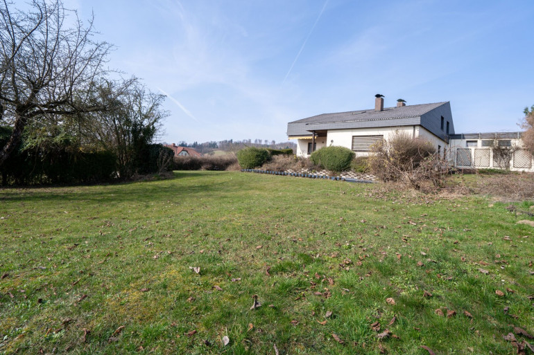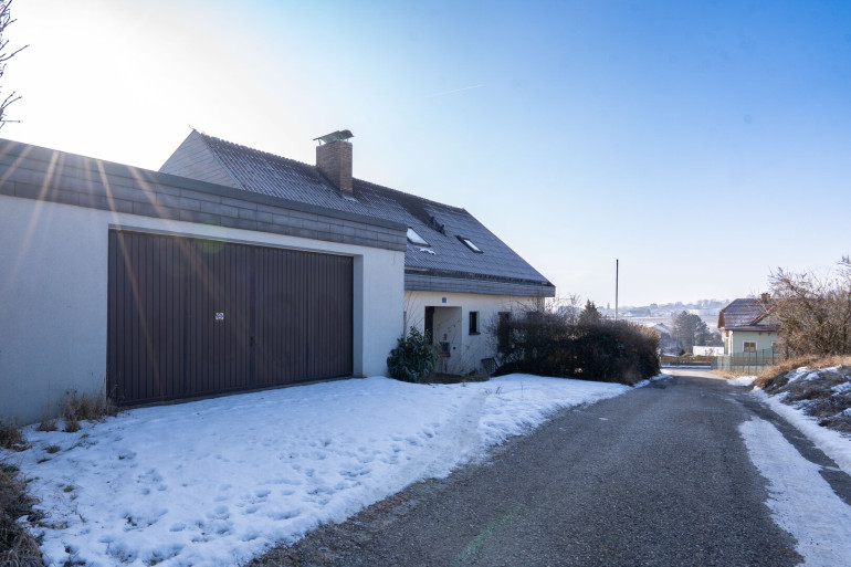 Zum Verkauf gelangt ein großzügiges Einfamilienhaus mit viel Potenzial, das auf rund 220 m² Wohnfläche verteilt über Erd- und Dachgeschoss sowie einem voll unterkellerten Bereich von ca. 110 m² vielseitige Nutzungsmöglichkeiten bietet. Im Erdgeschoss befinden sich eine Küche, ein Essbereich, ein geräumiges Wohnzimmer, ein Schlafzimmer, ein Arbeitszimmer, ein Ankleidezimmer, ein Badezimmer mit Badewanne und Dusche sowie ein separates WC. Das Dachgeschoss verfügt über drei weitere Zimmer, ein Badezimmer mit Dusche, ein separates WC und einen großzügigen Gangbereich. Der Keller umfasst den Heizraum, einen Vorratskeller, einen großen Partyraum mit Schwedenofen sowie einen Fitnessraum. Der Außenbereich bietet einen großzügigen Garten mit Pool und eine ca. 50 m² große Terrasse mit elektrischem Sonnenschutz. Für Fahrzeuge stehen eine Doppelgarage mit elektrischem Garagentor sowie zusätzliche Stellplätze vor dem Haus zur Verfügung. Das Haus befindet sich in einem renovierungsbedürftigen Zustand, bietet aber eine hervorragende Basis für individuelle Gestaltung und Modernisierung. Die Bäder und WC’s wurden vor rund einem Jahr erneuert. Geheizt wird mittels Gaskombitherme.