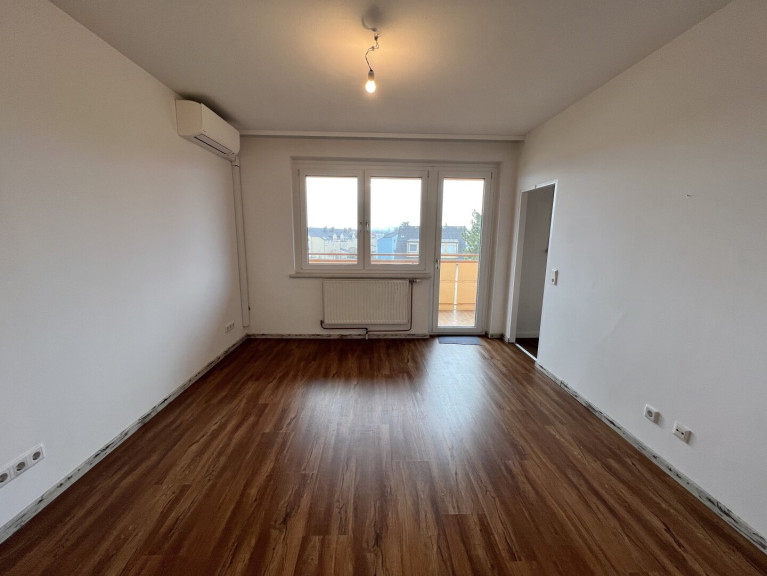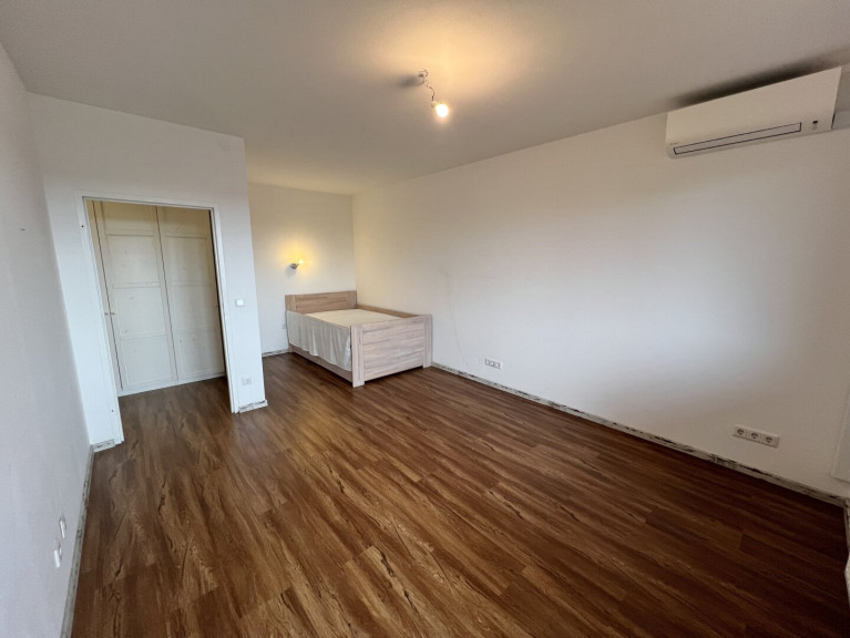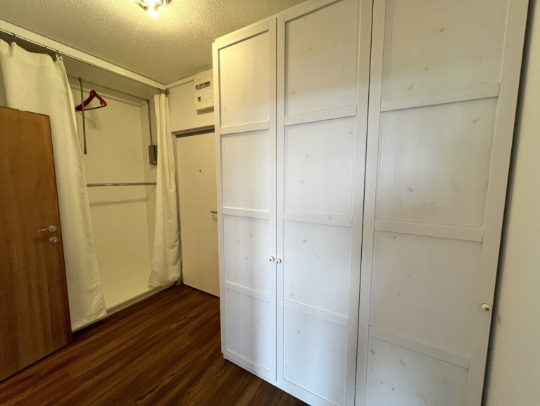 Der Wohnraum ist äußerst effizient geschnitten und bietet dank intelligenter Planung ein angenehmes Wohngefühl. Die einladende Loggia mit Südausrichtung lädt dazu ein, den Blick ins Grüne zu genießen – ob beim Frühstück am Morgen oder zum Entspannen nach einem langen Tag.