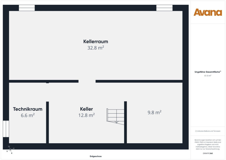 - Kellerraum mit ca. 32,76 m²