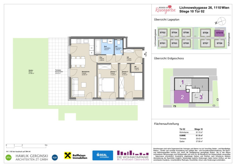 Das Energiekonzept setzt auf Wärmepumpen und Geothermie und erfüllt den Niedrigenergiehaus-Standard (positiver DGNB ÖGNI Pre-Check). So wohnen Sie nicht nur komfortabel, sondern auch nachhaltig und energieeffizient.