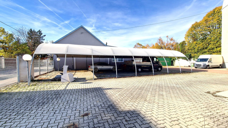 Zur Liegenschaft gehören zwei überdachte Stellflächen in Zeltbauweise, mit Kapazität für insgesamt bis zu 12 Fahrzeuge. Ergänzt wird das Angebot durch eine ca. 78 m² große separate Garage.