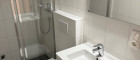 Das Schlafzimmer bietet ausreichend Platz für erholsame Ruhe und schafft durch die ruhige Lage einen idealen Rückzugsort. Ein modernes Badezimmer sowie ein praktischer Abstellraum ergänzen das Raumangebot.