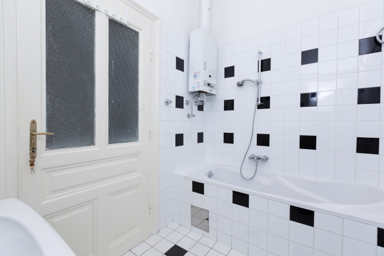 - Sanitärräume mit Fliesen im Retrolook und elegante Armaturen