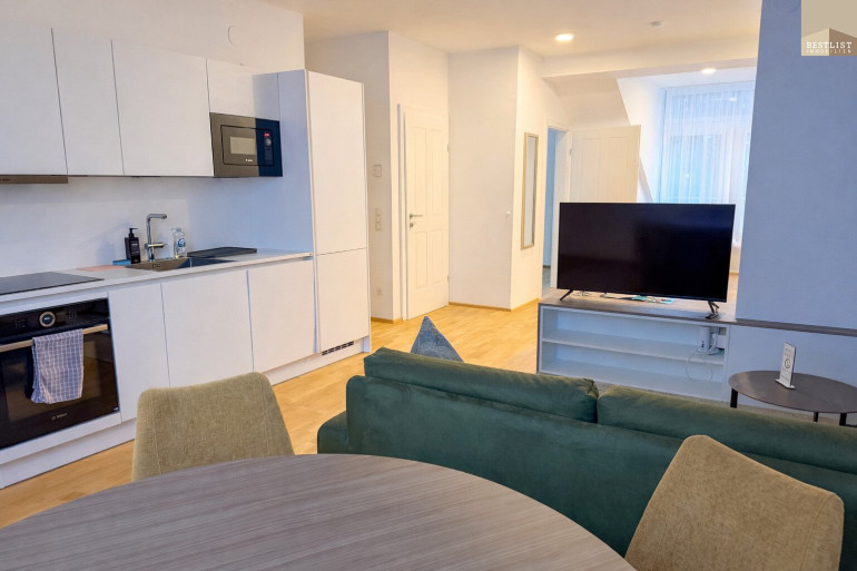 Die Wohnung befindet sich im Dachgeschoss eines klassischen Wiener Altbaus und wurde im Zuge eines modernen Ausbaus hochwertig adaptiert.