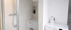 Das Badezimmer ist sehr modern ausgeführt und mit Dusche, Waschbecken sowie Waschmaschinenanschluss ausgestattet. Ein separates WC ergänzt das Raumangebot.