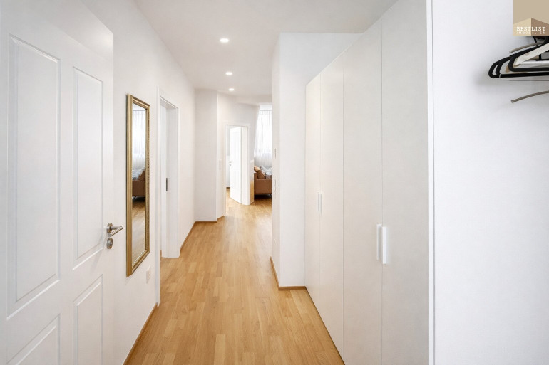 Der zentrale Wohnbereich bildet den Mittelpunkt der Einheit. Zwei separat begehbare Zimmer ermöglichen unterschiedliche Vermietungsmodelle und sprechen mehrere Zielgruppen an.