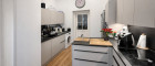 Die separate Küche ist funktional angeordnet und ist vollwertige ausgestattet. Das Kabinett eignet sich ideal als Arbeits-, Gäste- oder Kinderzimmer.
