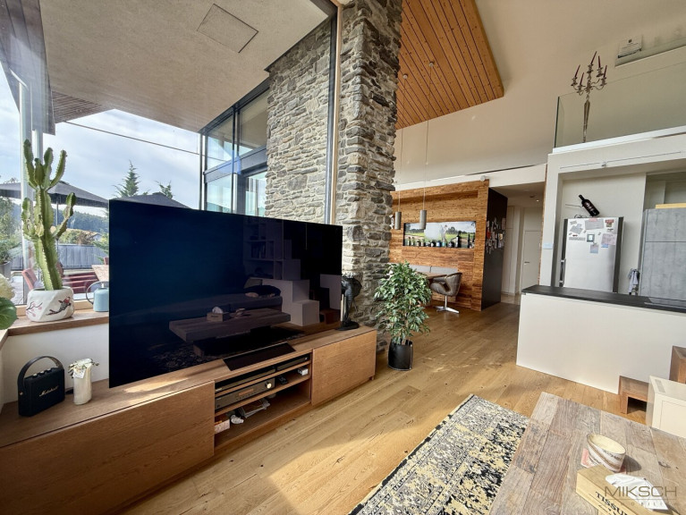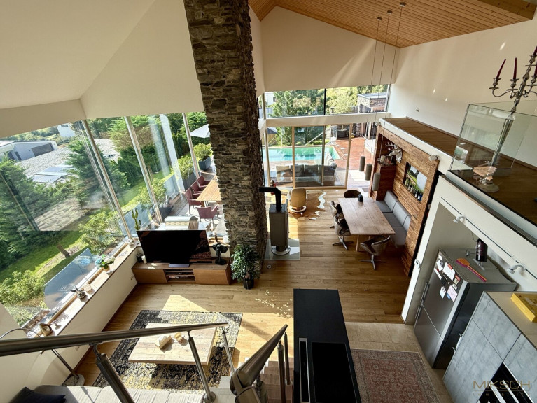 - offener Wohn-/Essbereich mit Kamin, Galerie und Zugang zur Terrasse & zum Pool