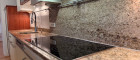 Großzügige offene Wohnküche mit Echtstein-Arbeitsplatte