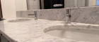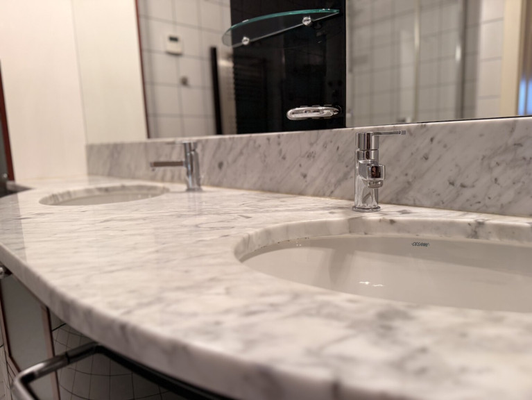 Die moderne Wohnküche mit hochwertiger Echtstein-Arbeitsplatte ist nicht nur ein Blickfang, sondern auch absolut alltagstauglich: viel Arbeitsfläche, durchdachter Stauraum und Platz für ambitionierte Kochabende ebenso wie für das schnelle Glas Wein nach einem langen Tag. Der Essbereich ist großzügig, hell und perfekt für lange Abende, einen großen Esstisch und Gäste, die eigentlich nur „kurz vorbeischauen“ wollten.