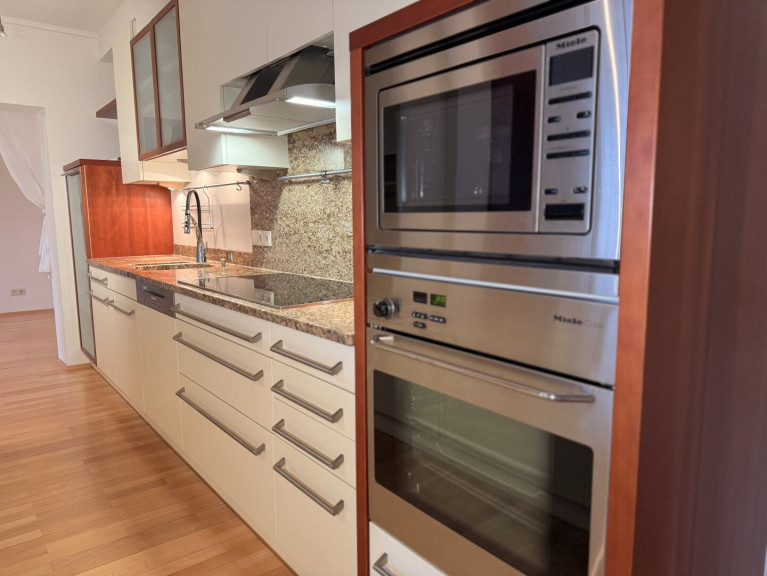 Parkett, Fliesen, Zentralheizung, Einbauküche, Wohnküche / offene Küche, Badewanne, Dusche, Tiefgarage, Alarmanlage