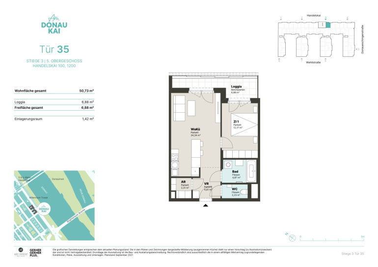 - öffentliche Anbindung: U6 & S-Bahn (Handelskai) sowie auch die Buslinien 5A & 11A