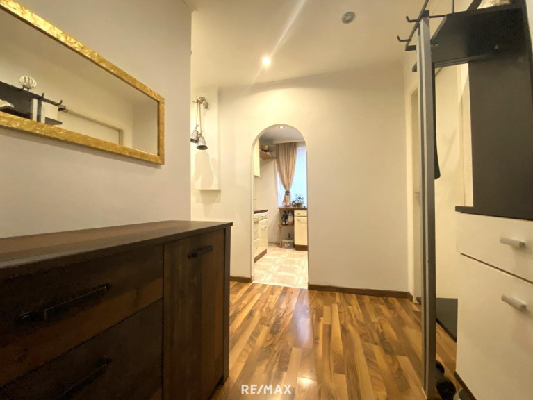 Aus dem zentralen Vorraum gelangen Sie in das ca. 21 m² große Wohnzimmer, das ca. 16 m² große, hofseitige Schlafzimmer, die hofseitige Küche mit Abstellraum/Speis sowie das Bad und das separate WC.