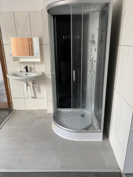 Fliesen, Laminatboden, Gas, Etagenheizung, Wohnküche / offene Küche, Bad mit Fenster, Dusche