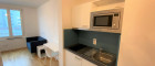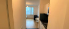 Die Wohnung selbst liegt im 3. Obergeschoss, ist Richtung Innenhof ausgerichtet und verfügt über einen möblierten Wohnraum (mit Bett, Sofa, Schrank, Tischchen und Sessel), ein Badezimmer mit Dusche und Toilette sowie einen Vorraum mit Küchennische (Kühlschrank, 2 Herdplatten & Mikrowelle)