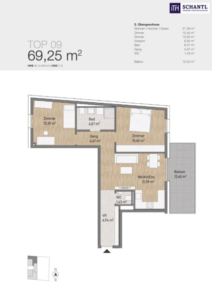 - Balkon 12,40m² in Ost/Süd/Nord-Ausrichtung