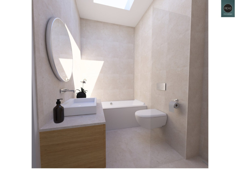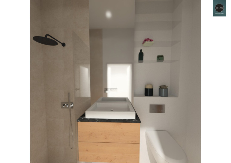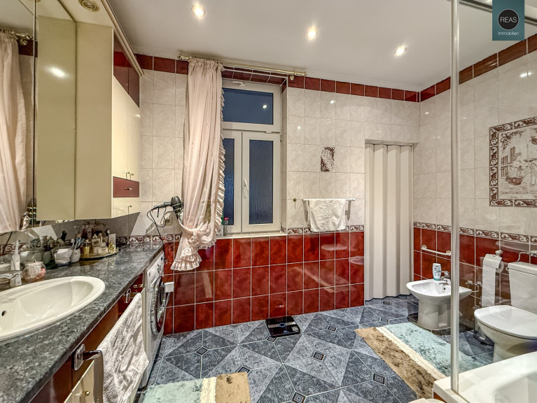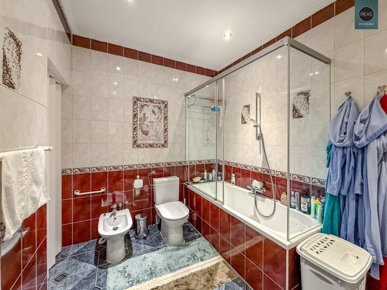 - 1 Bad/WC mit Badewanne, Doppelwaschbecken, Dusche, WC