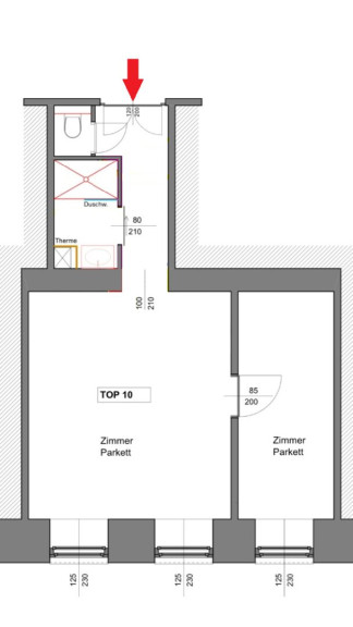 Es gibt dann natürlich die weiteren Räume Vorzimmer, Duschbadezimmer und WC.