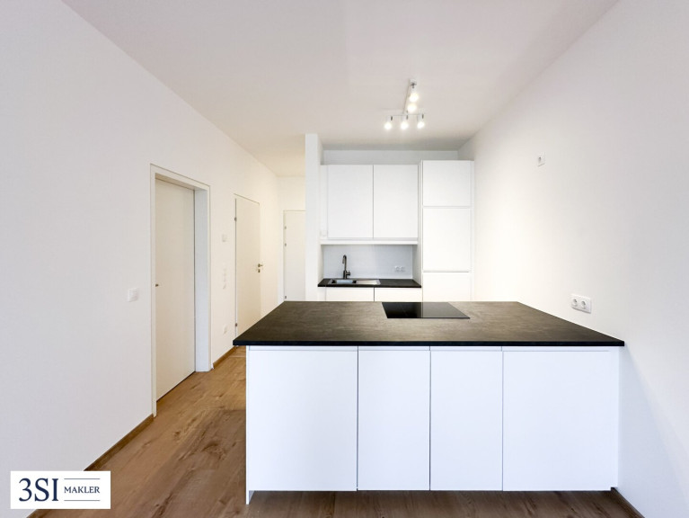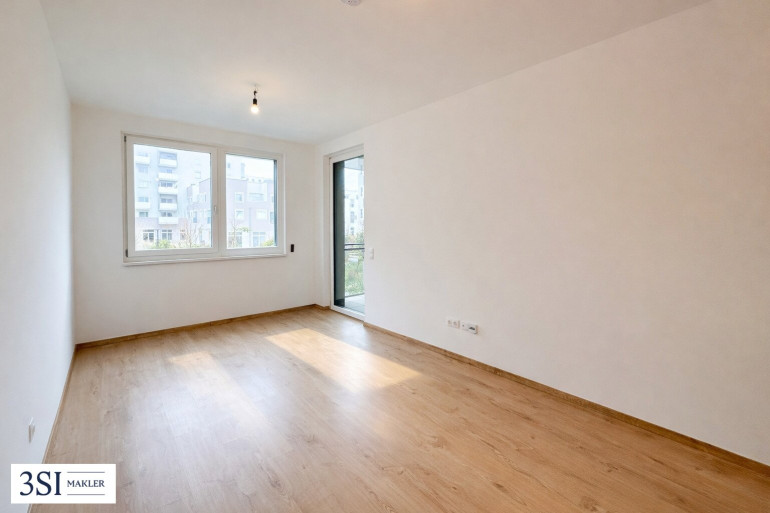 Bereits beim Betreten empfängt ein großzügiger Vorraum, der ausreichend Platz für Garderobe und Stauraum bietet. Der helle Wohn-/Essbereich mit neuwertiger Küche bildet das Herzstück der Wohnung und lädt zum Wohlfühlen ein. Von hier aus gelangen Sie direkt auf die Loggia, die ebenso wie das Schlafzimmer ostseitig ausgerichtet ist und einen schönen Grünblick bietet. Die Loggia ist sowohl vom Wohnbereich als auch vom Schlafzimmer aus begehbar.