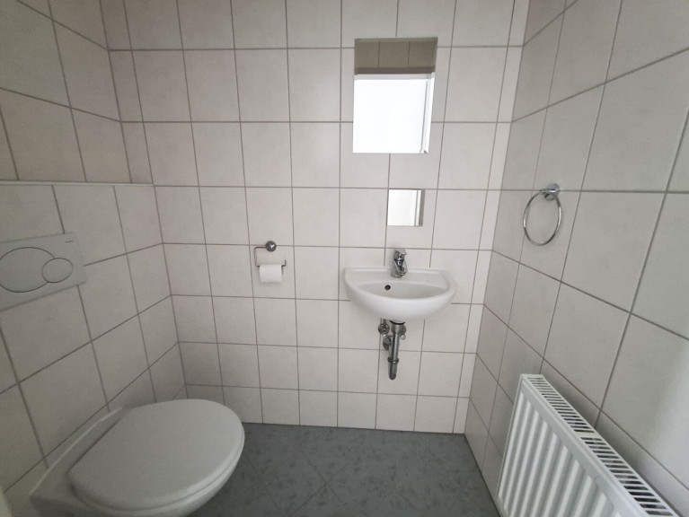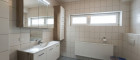 Fliesen, Laminatboden, Bad mit Fenster, Badewanne, Carport
