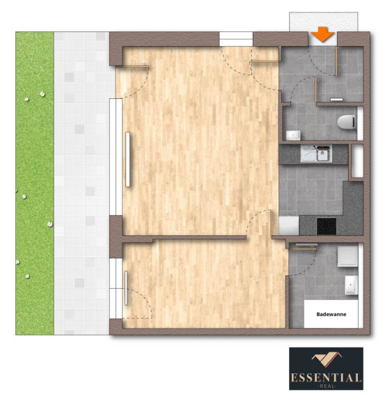 Sie verfügt über ein geräumiges Vorzimmer, eine lichtdurchflutete schöne Wohnküche mit Blick in den entzückenden Eigengarten, einem Schlafzimmer und einem Badezimmer en Suite. Durch die Errichtung 2016 ist jeglicher moderner Wohnkomfort als auch Energieeffizienz gegeben. Durch die südwestliche Ausrichtung kann man tagsüber und auch abends die Terrasse als auch den Garten optimal nutzen. Die Lage ist ruhig und grün, perfekt zum Entspannen.