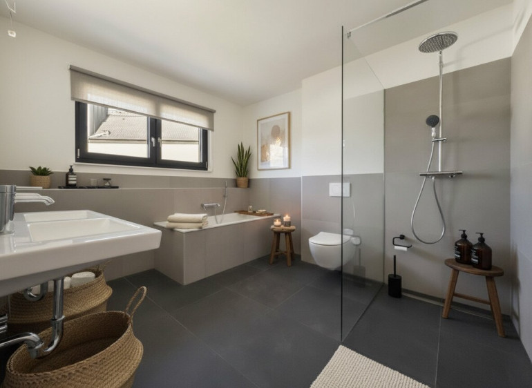 The approx. 100 m² garden and additional 20 m² terrace offer the perfect outdoor escape – whether for relaxation, play, or your own creative garden design. Raised beds, a lounge area, or even a whirlpool – it’s all possible here.