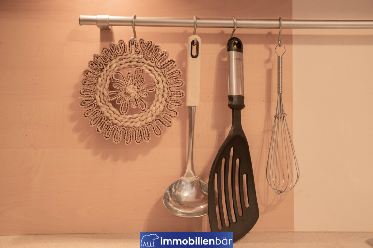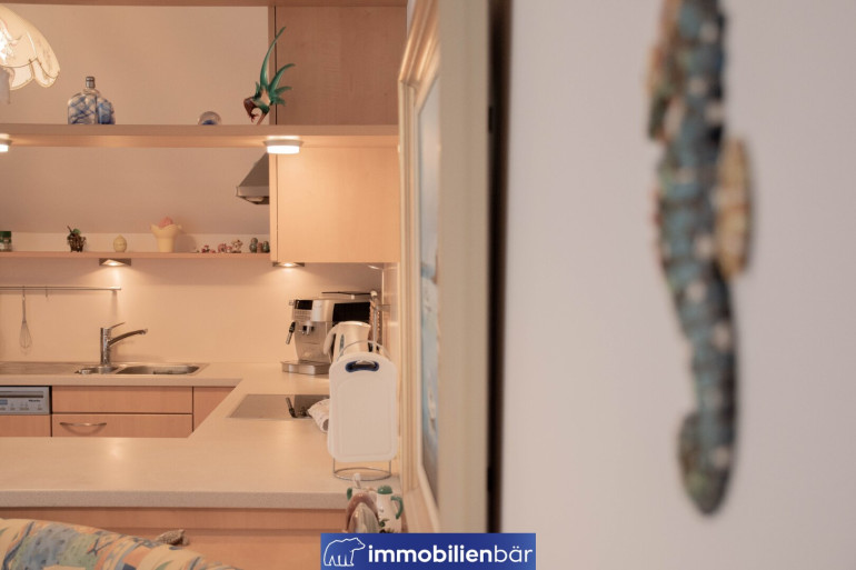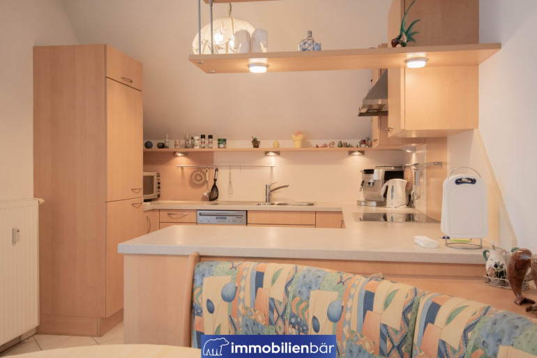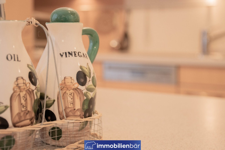 Ein besonderes Highlight ist die hochwertige Tischlerküche, ausgestattet mit Markengeräten, die sich harmonisch in den Wohnbereich einfügt und sowohl funktional als auch optisch überzeugt – ideal für genussvolle Kochabende und geselliges Beisammensein.
