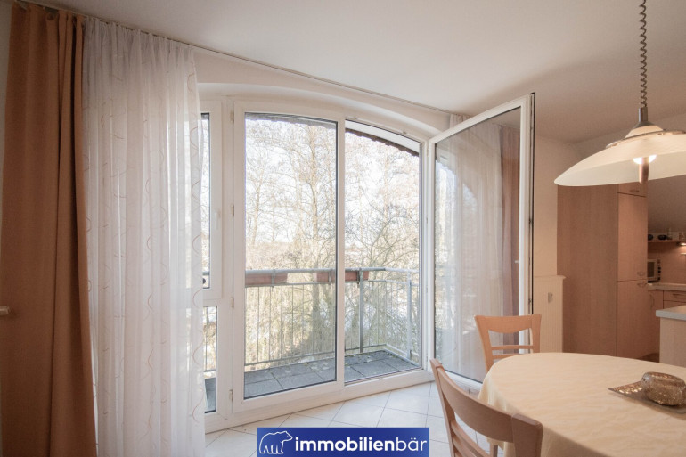 Der Balkon mit Grünblick lädt zum Entspannen ein und bietet einen angenehmen Rückzugsort mit Blick ins Grüne – perfekt für ruhige Morgenstunden oder entspannte Abende.