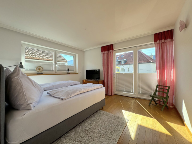 Eine traumhafte Dachterrassenwohnung: Das Highlight des Anwesens! Diese exklusive 4-Zimmer-Wohnung erstreckt sich über die zwei obersten Etagen und verfügt über eine großzügige Dachterrasse mit atemberaubendem Panoramablick auf die umliegende Berglandschaft
